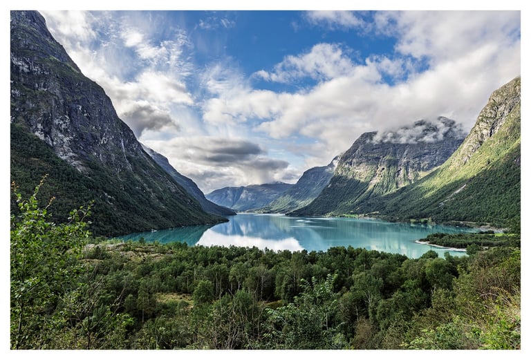 Norway’s landscapes are among the most dramatic in the world, shaped by water into deep fjords, soaring mountains, and reflective lakes. From narrow waterways framed by towering cliffs to silent valleys and glacier-carved peaks, these scenes reveal nature’s raw power and serene stillness in equal measure.